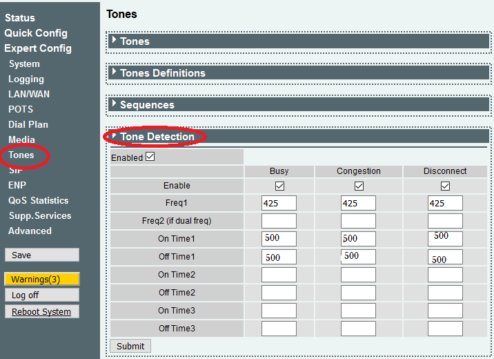 و نهایتا این اعداد را در تنظیمات FXO و خطوط آنالوگ ود بخش Busy , congesion وارد میکنیم.