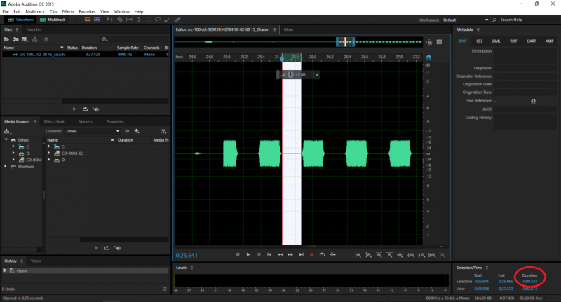 به کمک نرم افزار Adobe Audition میتوان زمان on/off time را که معمولا 500 میلی ثانیه هست، بدست آورد.